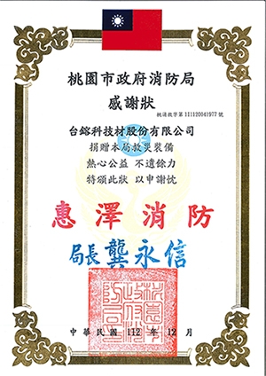 桃園市政府消防局感謝狀