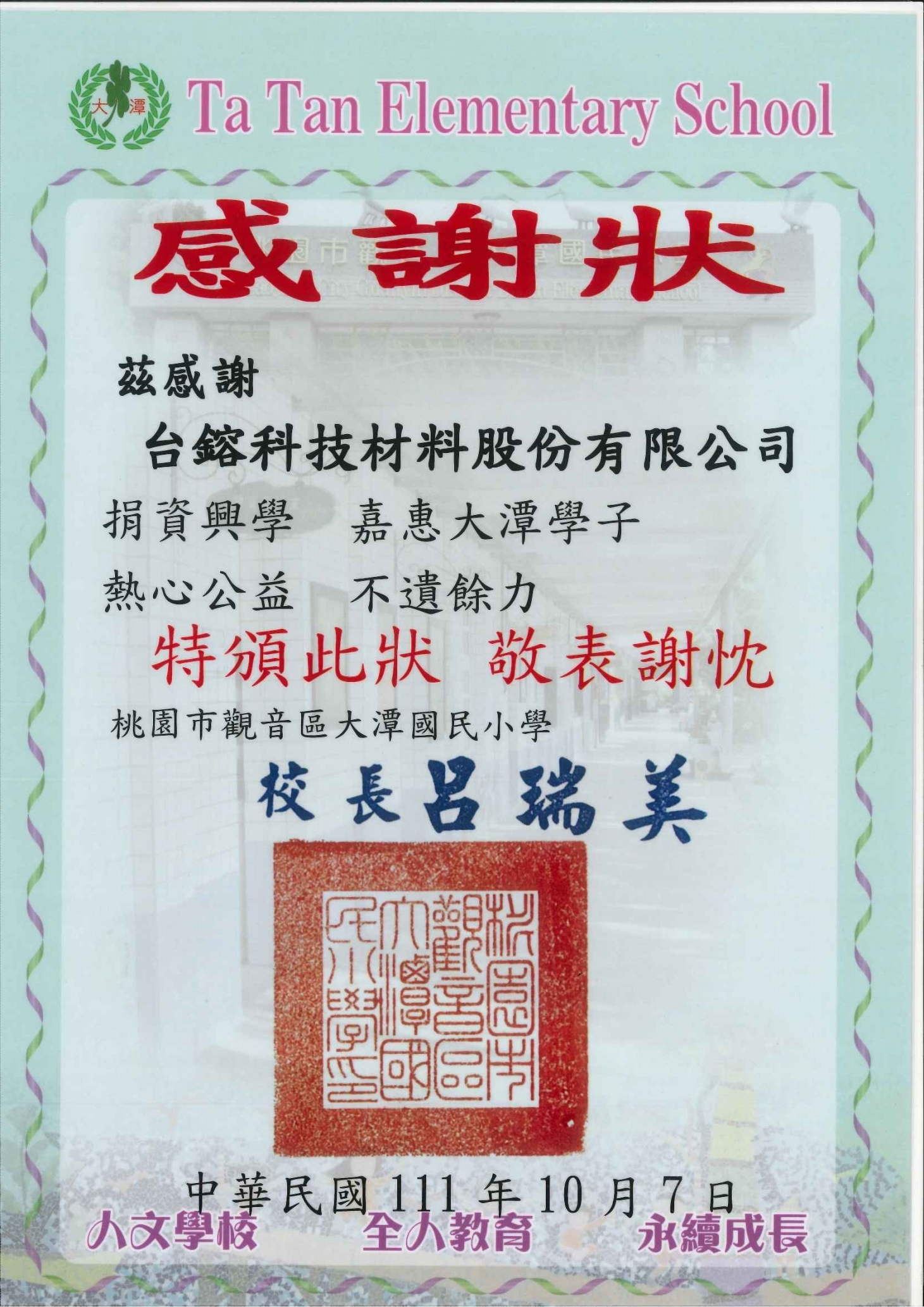 『敦親睦鄰、桃園觀音區5校受贈』